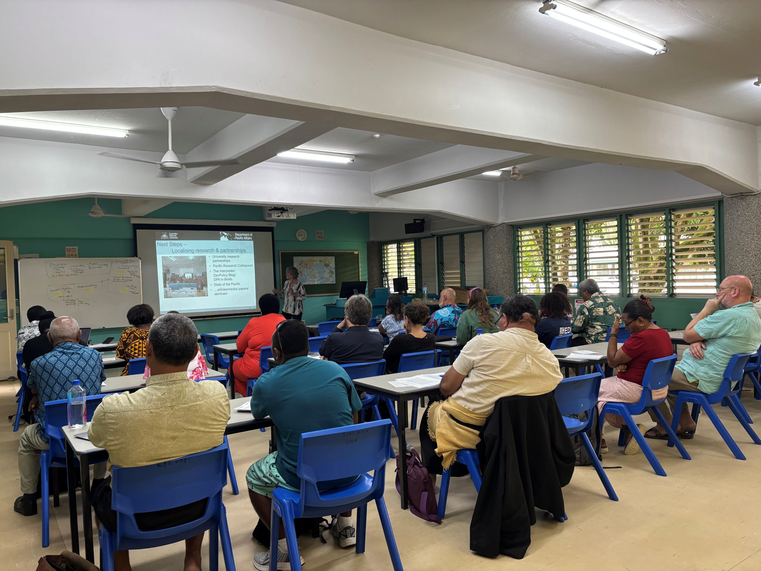 Throughout the week, numerous sessions were led by PIURN Academics from USP, National University of Samoa, PNG University of Technology, University of New Caledonia, as well as researchers from Australian National University and Auckland University of Technology and the Pacific Community (SPC). The sessions provided an open platform for the participants to engage in rich exchanges and learn new concepts. The topics covered included Pacific data collection methodologies, the role of the Pacific region in climate diplomacy, strategies for building Pacific resilience… The students also worked on the synergies between their research work and identified possible collaboration.